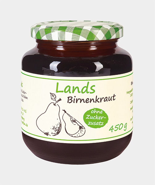 Unser ungesüßtes Birnenkraut enthält nur die fruchteigene Süße. Hergestellt aus 600 g Birnen und 120 g Äpfeln je 100 g.